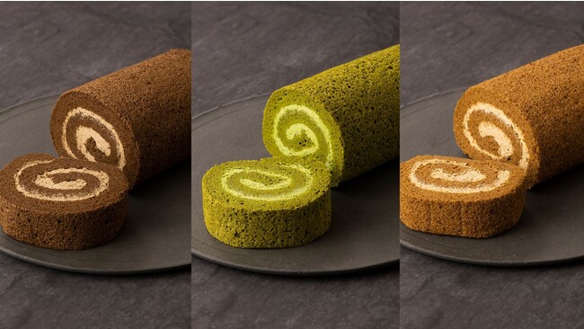 抹茶ロールケーキ、ほうじ茶ロールケーキ、和紅茶ロールケーキ 各1,580円(税込)