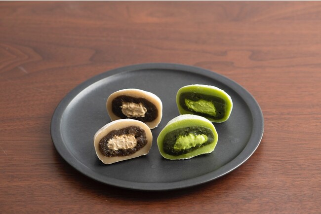 茶葉を練り込んだもっちり柔らか食感の餅皮と上質な甘さの小豆あん、