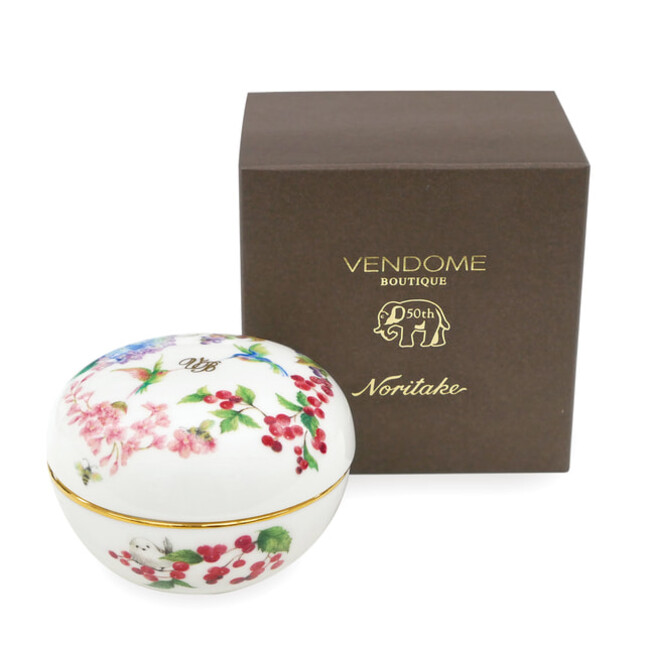 ヴァンドームブティックの心華やぐフラワーアクセサリーとノリタケの“ボンボニエール”がセットになったスペシャルなアイテム。『幸せが宿る器』と言われるボンボニエールは、四季折々のモチーフを描いたオリジナルデザインです。