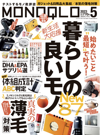 5月号は、新生活を応援する「暮らしの良いモノ87」を総力特集。喫茶店級の味を堪能できるコーヒーメーカーや、自宅で韓国グルメが楽しめるホットプレート、足を乗せるだけでストレッチできるロッキングフットレストなど、新生活をグレードアップしてくれるオススメのアイテムをたっぷりご紹介。そのほかにも、大人の男性の悩みを解決する「真実の薄毛対策」、ダイエットや健康管理に役立つ「体組成計24製品ABC判定」など、今欲しい情報満載でお届けしています。本リリースでは、編集部が“本当におすすめできる”製品の一部をご紹介します。