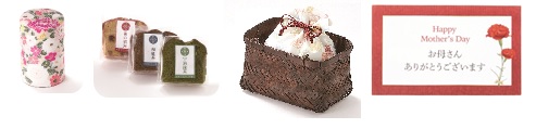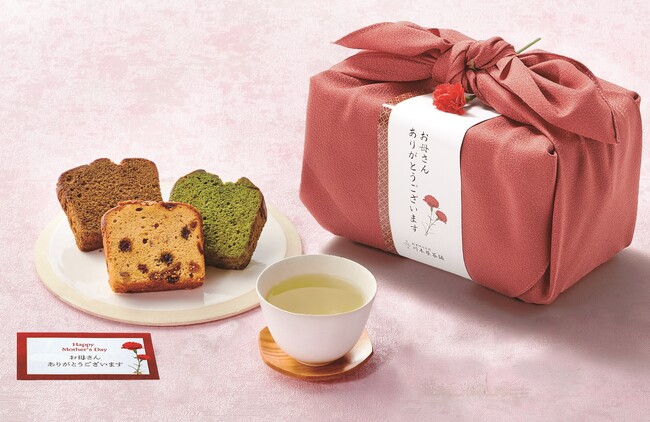 八十八夜摘み新茶と自家製パウンドケーキ3種を竹籠と風呂敷で包装した母の日仕様のギフトです。
