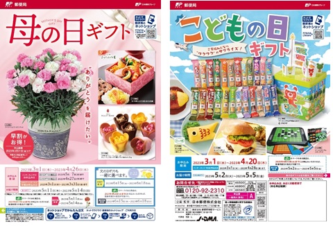株式会社郵便局物販サービス(東京都江東区、代表取締役社長 荒若 仁)は、2023年度版「母の日ギフト」と「こどもの日ギフト」を一冊にしたカタログを、2023年3月1日(水)から販売中です。