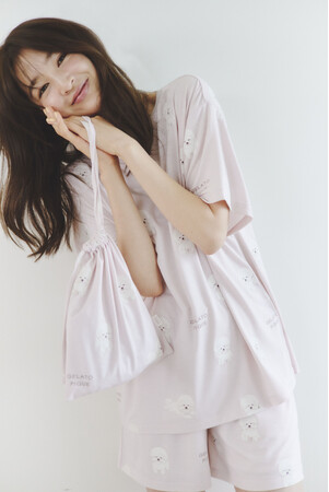 価格:¥11,000(税込) カラー:PNK サイズ:F 人気のビションフリーゼ柄のカットソーに限定カラーのピンクが登場。 Tシャツ&ショートパンツが持ち運びにも便利な巾着付きの3点セットになったMASH STOREだけの 特別なアイテムです。軽くてなめらかな肌触りのカットソー素材はこれからの季節にぴったりです。