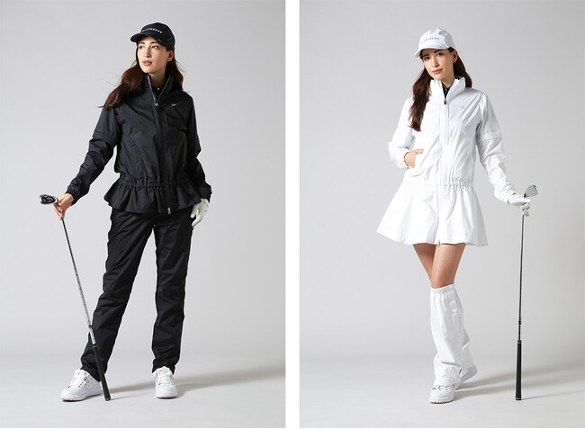 ワンピースはダブルジップのフロントファスナー、ベルクロ仕様のレッグカバー、ウエストのドローコードなどで、シルエットに変化をつけて着用できるのもポイント。