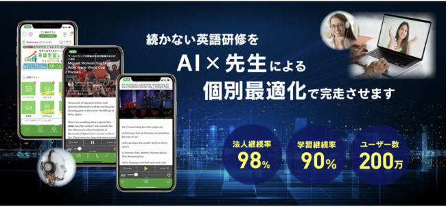 株式会社ポリグロッツ(本社:東京都新宿区、代表取締役:山口隼也)は、日本経済新聞社(本社;東京都千代田区 代表取締役;長谷部剛)が提供する日経電子版などの最新ニュースを英語でリスニングして学習できる「日経LissN(リッスン)」のニュースを学習コンテンツとして追加搭載しました。これにより学習者は日経ならではの質の高いニュースを英語で聴いたり、読んだりすることで、日常の仕事に直結する「生きたビジネス英語」を効果的に身に付けることができます。