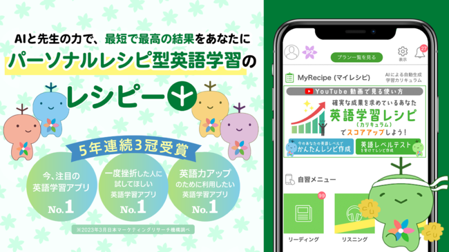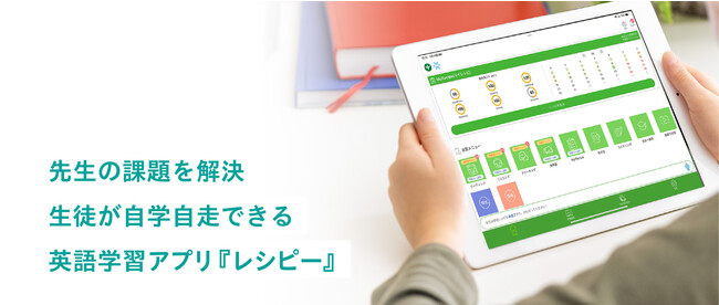 ・6技能全てを網羅した英語学習アプリ「レシピー」を利用した総合的な英語力の向上・AIにより、学習履歴や他学習者の成果の出た学習プロセスを分析し、一人一人に合わた日々の学習カリキュラムを生成