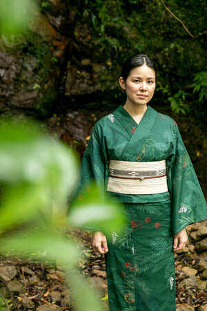 ・ゆかた「奄美の森」深緑/珊瑚/砂色 60,500円(税込・仕立て付き)