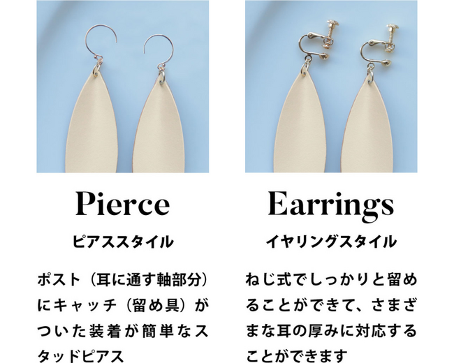 形は2種類 ピアスとイヤリングから選んでいただけます。