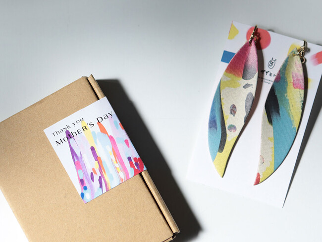 ご自宅に届いたあとそのままギフトとして贈っていただけます。母の日の特別な贈り物に世界で一つだけのアートな革のアクセサリーをプレゼント。5月6日までのご注文で母の日に間に合うようお届けさせていただきます。