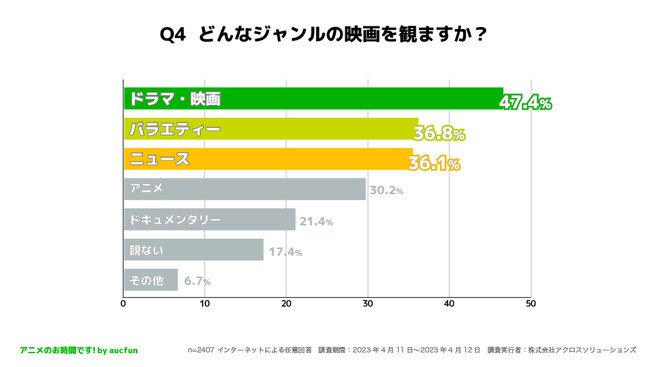 最も多かったのは「ドラマ・映画」で47.4%でした。
