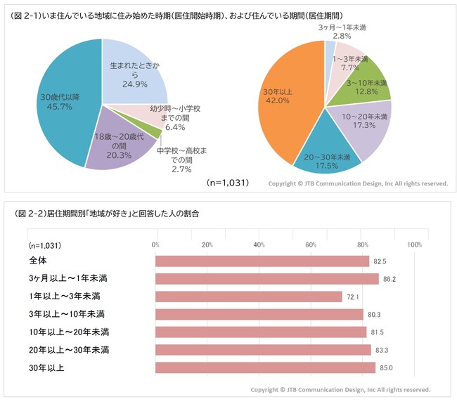 居住年数が短いケースでも72%が「地域が好き」と回答