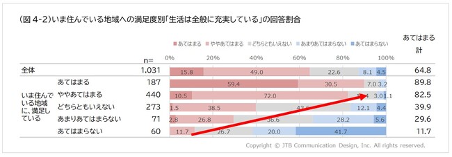 4.地域(市区町村)に満足や愛着を感じる人ほど、生活全般の充実度が高い
