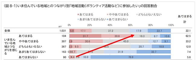 8.「地域とのつながり感」がある人は、地域活動や地域貢献へのモチベーションが高い