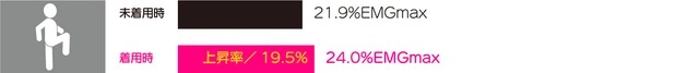3.足踏み運動104rpm(60秒で104歩のリズム)未着用時:21.9%EMGmax ⇒ 着用時:24.0%EMGmax 上昇率:19.50%