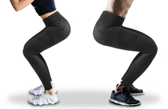 「体幹スクワットスパッツロング」の最大の特徴は、本格的なトレーニングを行えない人でも、日常動作や運動をする際に、はいているだけで、スクワット運動で使われる大腿筋をより効率的に鍛えることができる点にあります。