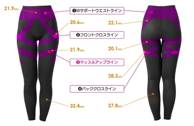上記1.~4.の各部の着圧が、日常動作をトレーニングに変えてくれる重要な役割を果たします。
