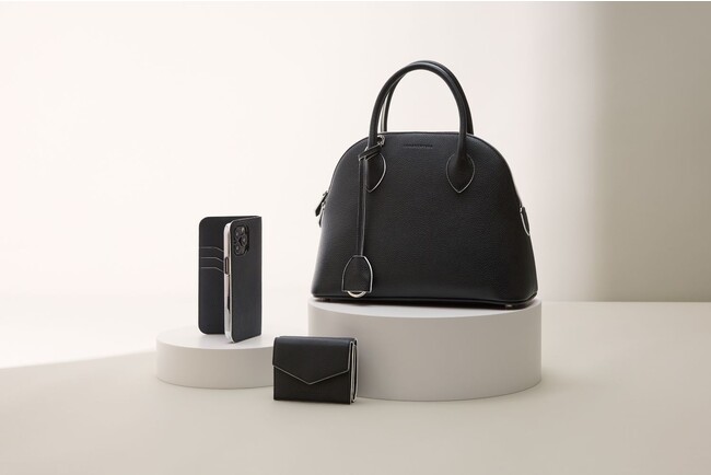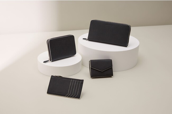 ブラックシュリンクレザーに熟練した職人の手仕事でホワイトエッジペイントを施した、シンプルながらもアクセントの効いたコレクションで、バッグ3型、ウォレット4型、iPhoneケース2型の全9型を展開いたします。