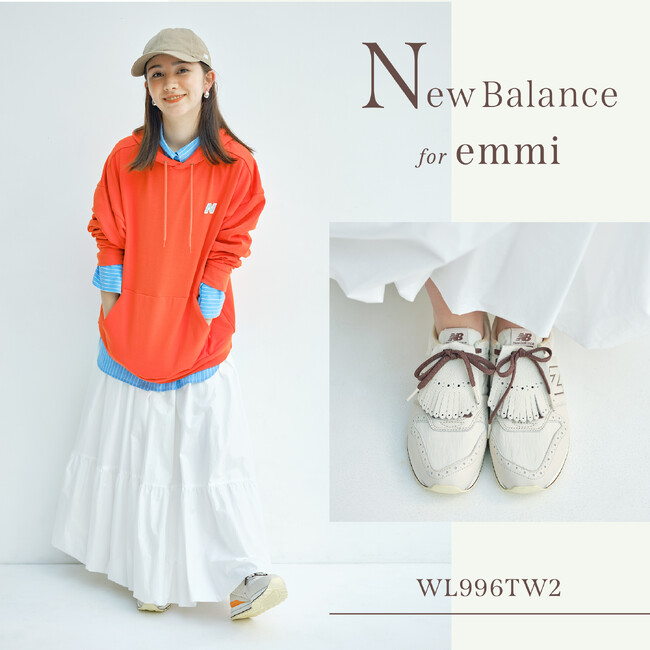 株式会社マッシュスタイルラボ(東京都千代田区/代表取締役社長 近藤広幸)が運営し、レディースアパレルとヨガウェアを展開するブランド「emmi(エミ)」は、グローバルスポーツブランド「New Balance(ニューバランス)」とのコラボレーションモデルであるWL996モデルを2023年5月8日(月)12:00よりオフィシャルオンラインストアおよびECデパートメントストア「USAGI ONLINE(ウサギオンライン)」にて先行予約開始。emmi全国直営店では5月16日(火)より販売開始いたします。※無くなり次第終了となります。予めご了承ください。(emmi公式ホームページ:http://emmi.jp/ )