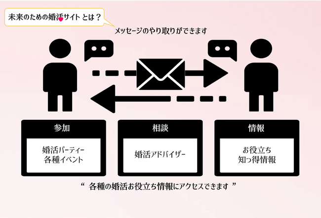 「未来のための婚活サイト」は、婚活パーティーや各種イベント、婚活アドバイザー紹介など婚活に関する各種情報の提供事業者からの広告料で成立するビジネスモデルになっています。