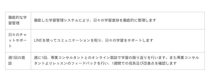 そこでQQEnglishでは、「発話瞬発力」を徹底的に鍛えるために効果的な「カランメソッド」を採用したコーチングプログラムを開発しました。専属コンサルタントが日々の学習管理、週1回の面談、チャットサポートでモチベーション管理を行い、100日間伴走いたします。