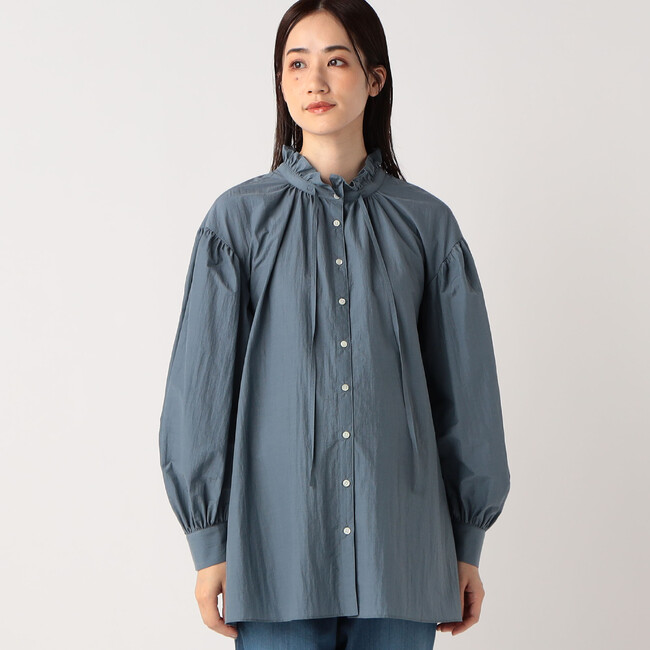 ・空気が入ると膨らむボリュームスリーブと、ネック部分のフリルがポイントです。
