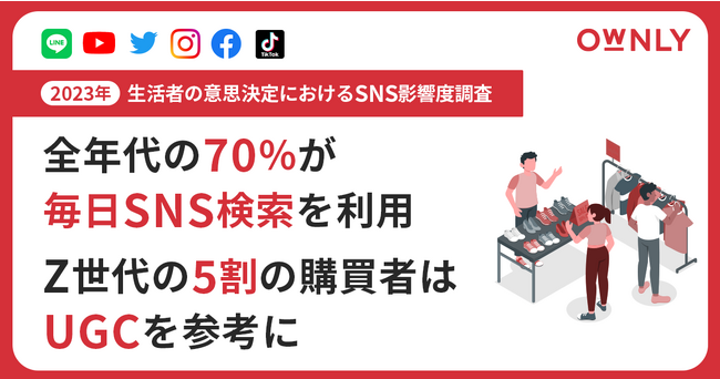 弊社は2011年からSNSマーケティングツール「OWNLY」を提供し、企業のSNSマーケティングを支援してまいりました。日本国内のSNS利用者数は年々増加しており、SNSは生活の一部とも言える欠かせない存在です。今やプライベートのコミュニケーションに止まらず、ビジネスの場としても多く活用されています。SNSが生活者の意思決定に与える影響を把握し、企業が注力すべきSNSを知るため、SNSの影響度と利用状況について調査を実施しました。