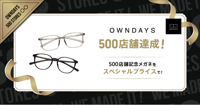 メガネ・サングラスの製造販売を手掛けるOWNDAYS株式会社(本社:沖縄県那覇市、代表取締役社長:田中修治)は、世界13カ国・地域に展開し500店舗以上の出店を達成しました(5月末現在533店舗)。メガネブランドOWNDAYSは、年間250万本のメガネを販売し、たくさんのお客様に支えられ成長を続けて参りました。500店舗出店を記念して、軽くてかけ心地のよい日本製樹脂素材を使用したOWNDAYS500店舗達成記念フレームを本日から発売。より多くのお客様の手に取っていただくきっかけになればと考え、スペシャルプライスで販売いたします。