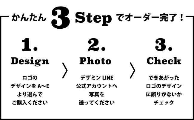 5パターンから好きなデザインを選べば、プロのデザイナーが写真や絵に合わせてオリジナルのロゴを作成。