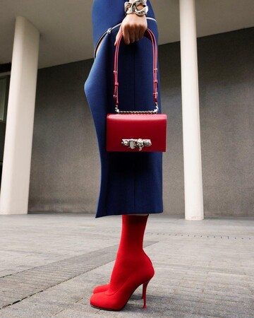 バイカージュエルドサッチェルと名付けられたこのバッグは、マックイーンのバイカー精神にインスパイアされたレザーストラップと、シグネチャーのナックルハンドルが特徴的なバッグです。