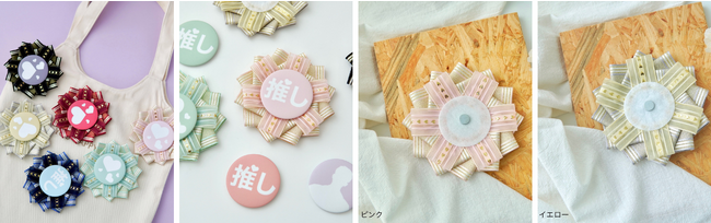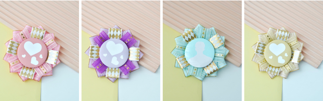 1.「華とハートと」缶バッジロゼット 各 1,580円(税込)