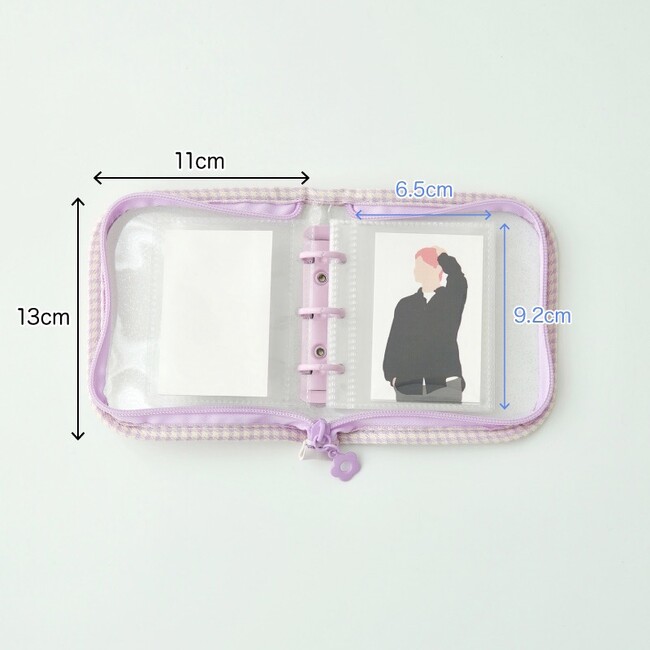 中に3つのリングが付いたバインダータイプのグッズ収納ポーチです。