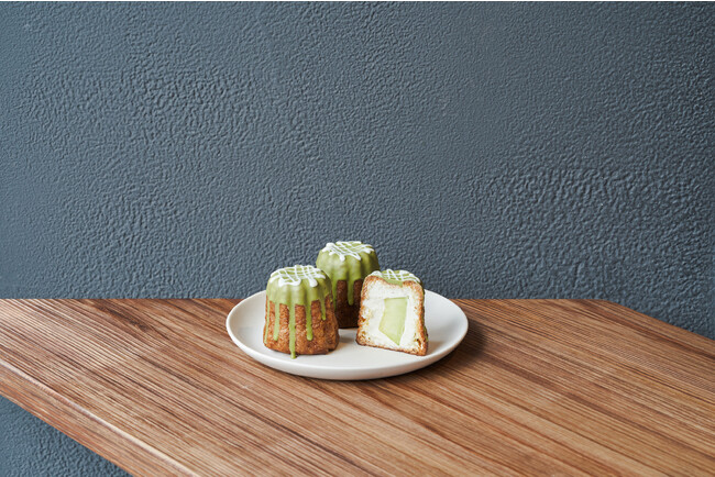 カヌレ型で焼き上げたシュー生地に、ハチミツで甘さをつけたマスカルポーネクリームをたっぷり詰め、その中にはジューシーなメロンを忍ばせました。