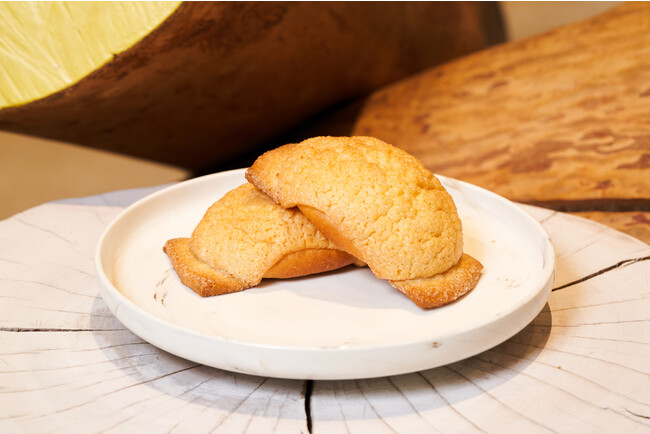 ふわふわの菓子パンにレモンフロマージュクリームを包み、ハチミツに漬けたレモンスライスをトッピングした爽やかなメロンパンです。