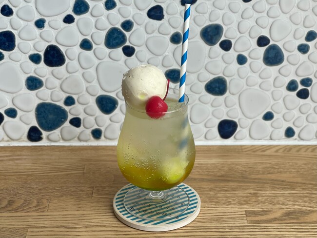夕張メロンシロップを使用したソーダに、バニラアイスとさくらんぼをのせた懐かしい見た目のドリンク。本格的なメロンの甘さと香りを味わえます。
