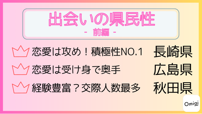 ~恋愛姿勢が積極的なのは「長崎県」/交際人数トップは「秋田県」~