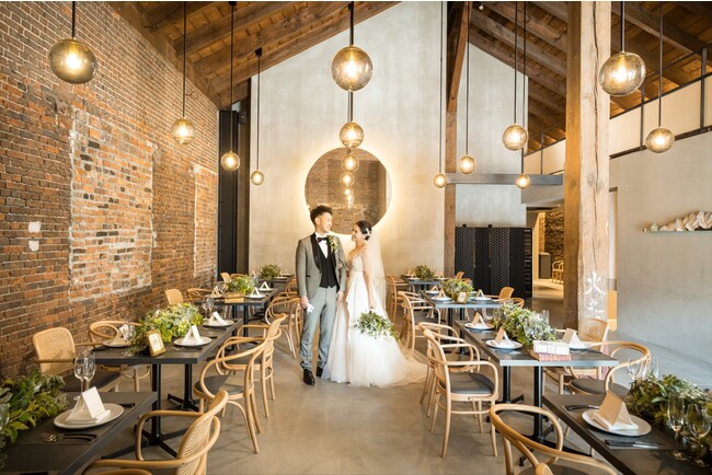 重厚感を残しつつも温かみを纏って生まれ変わった倉庫建築。時代を超えて受け継がれる「本物」だけに宿る特別感がお二人のウエディングを彩ります。