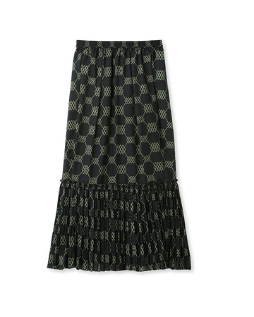 裾に軽快なランダムプリーツをあしらった、後ろがゴム仕様のエラスティックスカート。