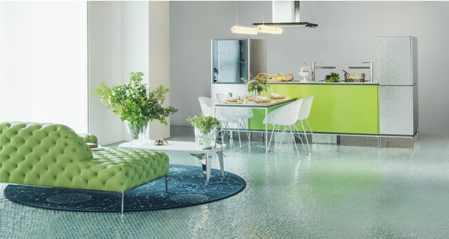 トーヨーキッチンスタイルのシステムキッチンのハイエンドモデル「iNO」に新作が登場。新しいデザイン「フレッシュグリーン」は、瑞々しいフルーツや、芽吹く新緑、新鮮なサラダを思わせる鮮やかなグリーン、自然界が作る命の色を表現しています。グリーンには生命力が溢れ出すような活動的なイメージの反面、心にやすらぎをもたらし、リラックスできる効果があると言われています。仕上げは、ヘアラインフィニッシュを施しました。