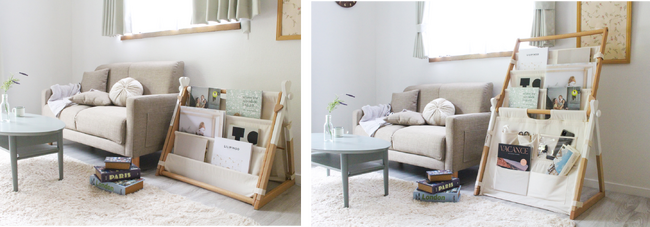Moveマガジンラック3wayセットは子ども部屋だけでなく、リビングや寝室にも使っていただけるナチュラルなデザインで、場所や年齢を選ばずにご使用いただけます。