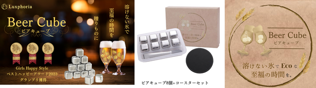 2023年3月14日にリリースした「ビアキューブ」はビールをはじめとしたお飲み物を薄めずに飲み終わりまで冷たさをキープできるステンレス製の氷です。この氷の秘密は、不純物を除いた純水と人体にも含まれるグリセロールが保冷効果の高いステンレスのキューブの中で凍ることにより長時間にわたって保冷効果を発揮します。