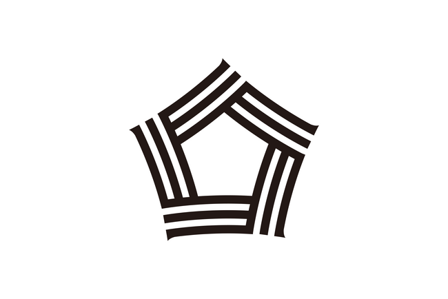 「五色彩雲」の「五」という数字に着目し、五角形(ペンダゴン)を図案化。五角形は万物を形成する5つの要素(火水木金土)を頂点に持つ完全体で、万能・成功を意味することから、新しいブランドの門出にふさわしい形でもある。先端を少し尖らせることでアイヌ文様のような雰囲気も取り入れた。
