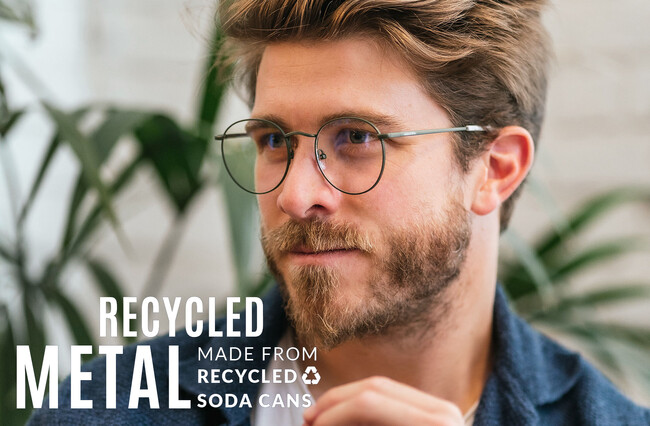 リサイクル金属(アルミ製のソーダ缶)を100% リサイクルしたリーディンググラスです。耐久性に優れた軽量メガネで、4つの度数をお選びいただけます。ポリカーボネート製のレンズは反射防止加工に加えて、電子機器から発せられる目に有害なブルーライトをフィルタリングします。