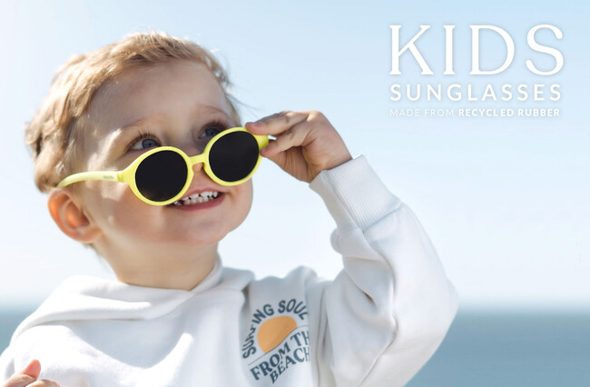 100%リサイクルのラバータイヤを使用したキッズ用サングラスです。構成するリサイクル素材によってもたらされる柔軟性と強靭さを備えています。耐水性があり非常に軽量。お子様の目を太陽から守り、地球を守ります。小さな子供たちの強さにインスパイアされたコレクションは、地球上で最も汚染された素材の1つであるタイヤのゴムで作られたサングラスの強力な色に反映されています。B CORP・ISO 認定のポリカーボネート製のレンズはUV400認定を受けています。