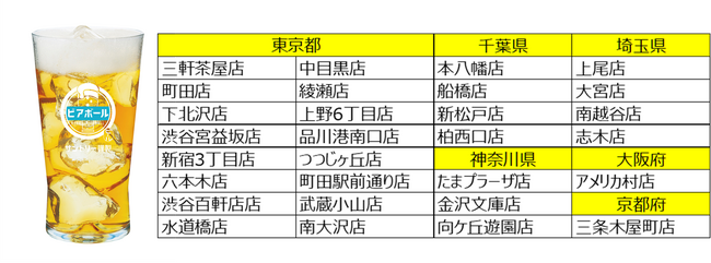 ※以下の店舗は、ビアボールがより美味しく感じられるように開発された「ビアボール専用タンブラー」にてご提供します。一味違うビアボールをご体験ください。