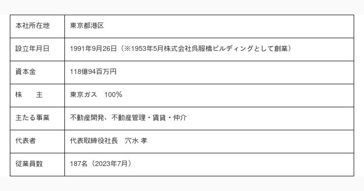 東京ガス不動産株式会社の概要