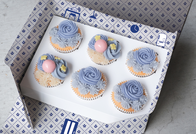 スミレさんのカップケーキはひと月に1回、それぞれの季節ならではの味わいのカップケーキを定期便にてお届けする新しいサービスです。スミレさんをイメージした、シンプルでありながらも、洗練されたあたたかみのあるデザインの箱の中には、箱を開けた瞬間、思わず笑顔になってしまう、季節をまとったカップケーキのほか、スミレさんからのお便りや、スミレさんの暮らしをちょっとのぞき 見したようなアイテムをモチーフにしたステッカーが入っています。