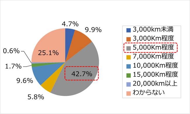 42.7%が5,000km程度を目安にオイル交換を行っている。
