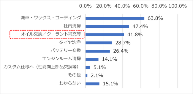 ■ 日頃のメンテナンスとして「オイル交換」は「洗車・ワックス・コーティング」、「社内清掃」についで3位に!