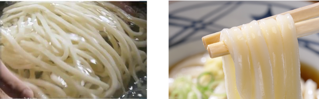 100%国産の小麦粉を毎日打ち、その場で麺を切って、茹でて、つくりたてをお客さまに提供しているからこそ、もちもちでおいしい独自の“丸亀食感”を守り続けることができているのです。