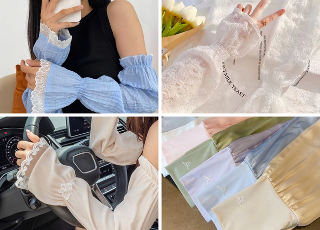 1.「サマーフェミニン」日除けスリーブ 各 3,200円(税込)